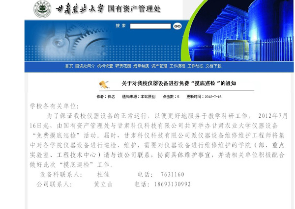 瀏覽次數(shù) :674實驗室儀器設(shè)備故障時常遇到體積大、送修麻煩等問題,給廣大師生的科研和學習帶了種種不便。為了能讓廣大師生使用安全、高效的儀器,科儀公司甘肅公司將在甘肅農(nóng)業(yè)大學舉辦實驗室儀器設(shè)備“免費摸底巡檢”活動。屆時將安排維修工程師集中對學校各院系實驗室儀器設(shè)備進行巡檢,維護保養(yǎng)。有需要儀器維修維護的學院請及時與我們聯(lián)系。時間:2012年7月16日起... [查看詳情]