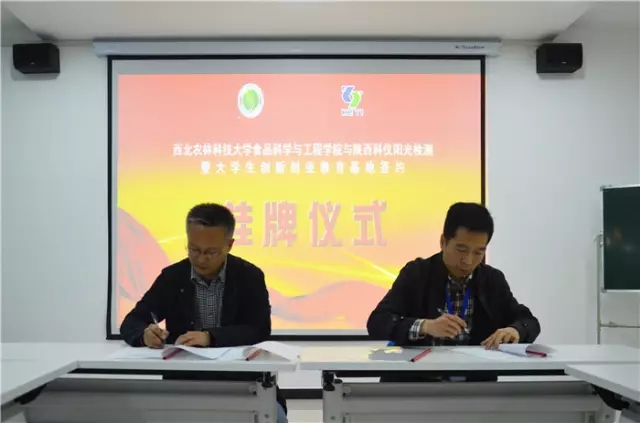 經(jīng)詳細了解會談后,雙方簽訂了大學生創(chuàng)新創(chuàng)業(yè)教育基地協(xié)議,并聘任科儀陽光檢測總經(jīng)理穆登峰擔任西北農(nóng)林科技大學食品科學與工程學院大學生產(chǎn)業(yè)導師。