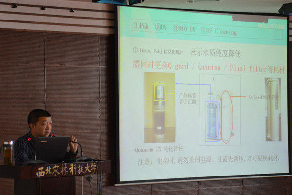 眾所周知,水對實驗結(jié)果的影響也是非常之大,自上世紀六十年代起,默克密理博就已經(jīng)開始致力于實驗室用純水系統(tǒng)的研究和開發(fā),為世界各地高校和臨床、制藥實驗室提供日產(chǎn)幾升至幾千升的超純水(I級)、分析級水(II級)和實驗室級水(III級)純化系統(tǒng)。多年來,Milli-Q、Elix、Super-Q、RiOs、Direct-Q和Simplicity等品牌在各類科學文獻中隨處可見,已經(jīng)成為全球科研工作者心目中的權(quán)威品牌。在西農(nóng)的實驗室里也分布著許多millipore的水機,下午苗工主要分享了一些他在多年工作中總結(jié)的水機系統(tǒng)的使用維護保養(yǎng)經(jīng)驗!