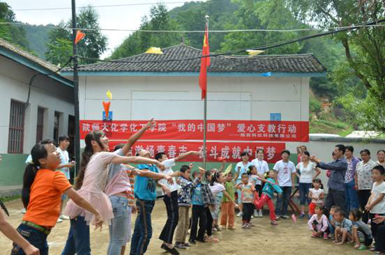 陜西師范大學(xué)化學(xué)化工學(xué)院學(xué)院赴陜西省藍(lán)田縣葛牌鎮(zhèn)暑期社會(huì)實(shí)踐團(tuán)隊(duì)于2013年7月7日上午抵達(dá)我們此次暑期社會(huì)實(shí)踐地——葛牌鎮(zhèn)瓦屋村尚赫慶斌小學(xué),開(kāi)展了為期5天的主題為“我的中國(guó)夢(mèng)”愛(ài)心支教活動(dòng)。