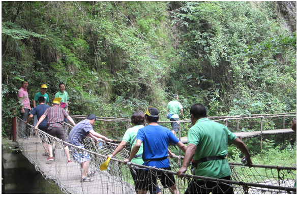 中壩大峽谷是此次行程的重中之重,上午游覽峽谷風(fēng)光,爬山道、走吊橋、搖搖晃晃、其樂無窮,不為到達終點的滿足,只為沿途風(fēng)光的怡人。下午是大家最為喜愛的漂流,兩人乘坐一艘充氣船,水流湍急,過程驚險刺激,到達終點集體打水仗,人人濕身,衣服雖然濕了,但是大家的熱情卻更加高漲,漂流結(jié)束后馬上返回后柳古鎮(zhèn)開始了賽龍舟,四艘龍舟威武大氣,大家分成四組同時出發(fā),鼓聲陣陣,吶喊加油不斷,大家齊心協(xié)力劃起槳,為奪龍旗而戰(zhàn)。這一天的行程雖然很累,但是都玩的高興,忘卻平日的煩惱和壓力,盡情玩樂。