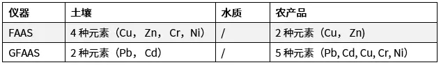 表 2. “詳查”中規(guī)定可由原子吸收測定的元素