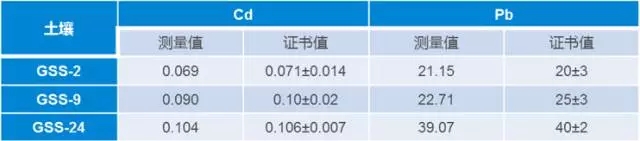 表 3. 土壤標(biāo)準(zhǔn)樣品鎘(Cd)元素分析結(jié)果(單位:mg/kg)