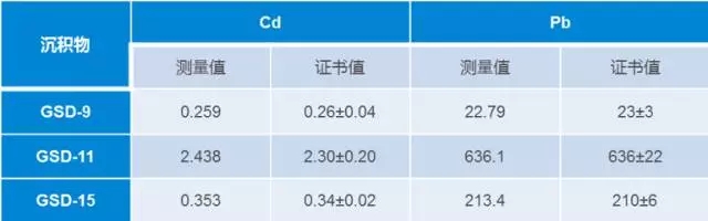 表 4. 沉積物標(biāo)準(zhǔn)樣品鉛(Pb)元素分析結(jié)果(單位:mg/kg)